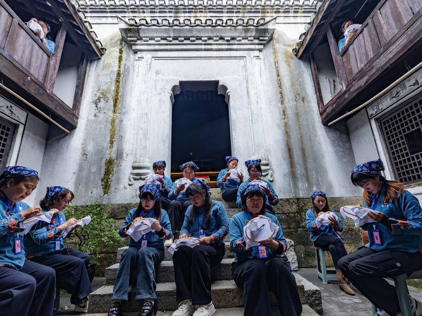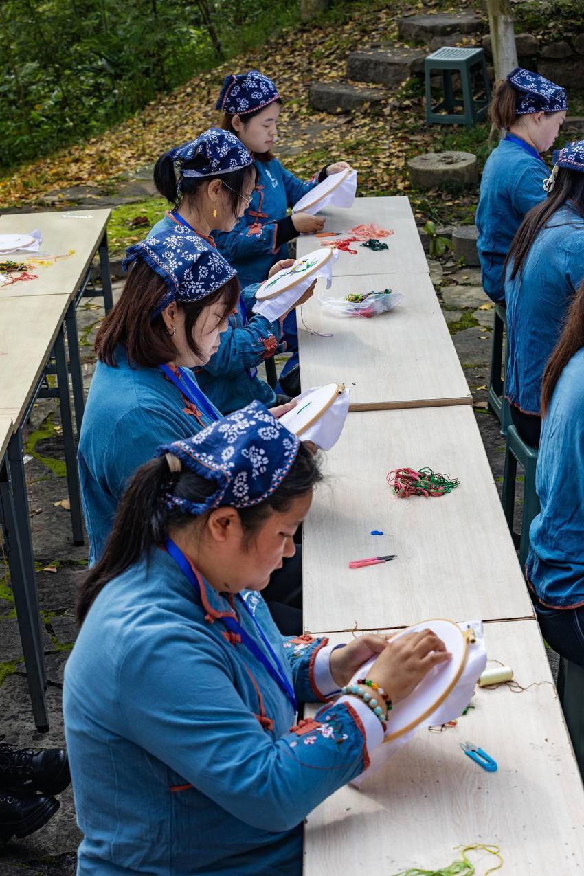 2025年11月2日,绣娘们正在加紧完成刺绣比赛。彭强摄