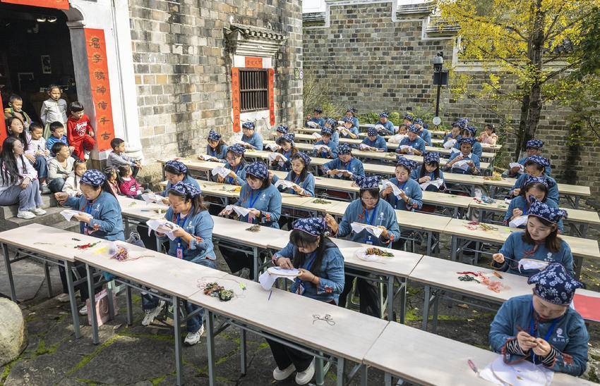 2025年11月2日速配发金融网速配发金融网,绣娘代表在秭归县屈原故里文化旅游区芈绣馆参加刺绣技艺比赛。郑家裕摄